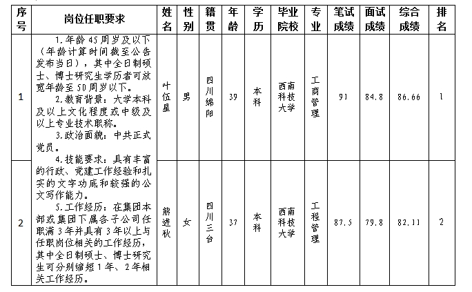 根據(jù)綿陽市城市停車管理有限公司發(fā)布的競聘公告及競聘相關(guān)規(guī)定,經(jīng)筆試、面試等程序,現(xiàn)將筆試(面試)成績予以公示。